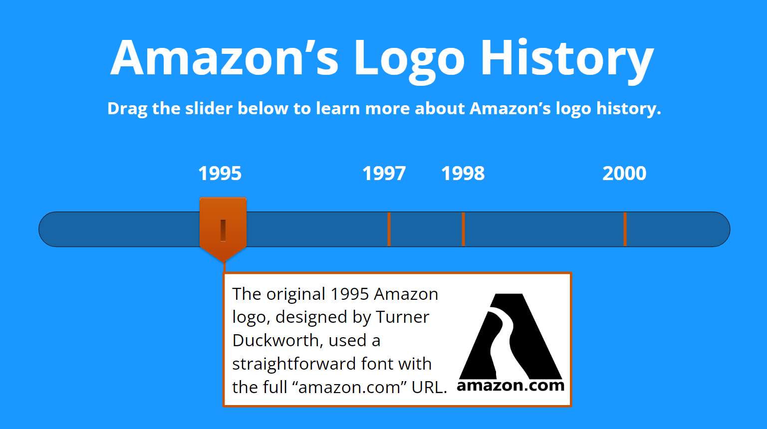This interactive timeline showcases my ability to design engaging, on-brand eLearning experiences. Learners can interact with the timeline by dragging the slider or using the keyboard arrows to explore the history of Amazon’s company logos from 1995 to 2000. The project includes informative text and images, allowing users to learn about each logo’s evolution. From a technical standpoint, I used number variables, triggers, layers, and states to build the interaction. Visually, the design reflects Amazon’s Prime blue, the orange from their 2000 logo, and the navy blue seen on their website. Since Amazon's fonts are proprietary, I chose Open Sans as a close alternative.