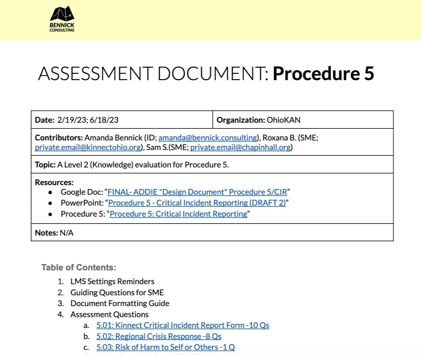 This assessment highlights my collaborative approach with Subject Matter Experts (SMEs) to create a rigorous and relevant assessment. It demonstrates my ability to not only comprehend nuanced content but also to distill and convey only the most essential information to learners effectively, and with sensitivity, encouraging desirable on-the-job behaviors. Furthermore, this assessment is directly aligned with an associated Design Document, showcasing my skills in Understanding by Design (UbD), or backward design.